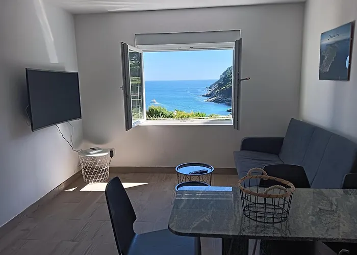 Die Ferienwohnung Pedra De Corvos Kap Kap Finisterre ist eine Unterkunft am Strand, die nur 450 Meter zu Fuß vom Castillo de San Carlos und nur 6 Fußminuten von der Kirche Santa María das Areas entfernt liegt.